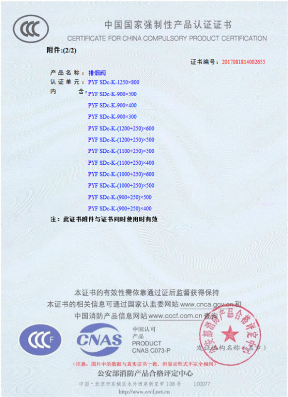 產品全通過國家消防檢測中心檢測,獲得CCC證書